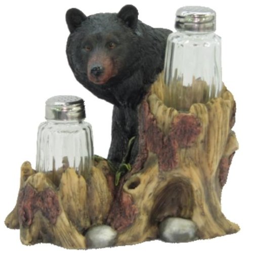 Bear SP shakers Salt and pepper shakers nested in tree trunks with a black bear behind and looking out 625x6 Case Pack 8 Please note If there is a colorsizetype option the option closest to the image will be shipped Or you may receive a random colorsizetype